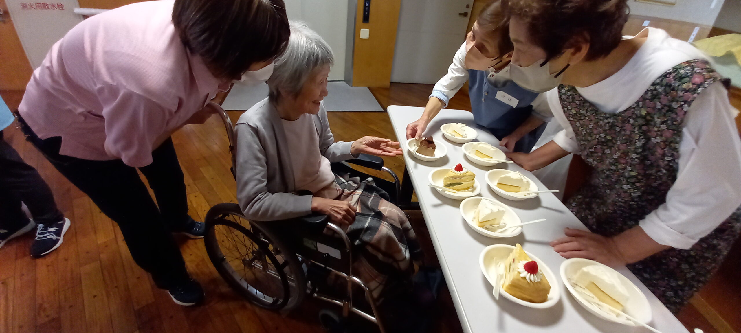 秋の家族会総会と喫茶会をおこないました。家族会の皆様とボランティア初参加の方々にも加わっていただきご利用者の皆様にケーキとお茶の時間をお楽しみいただきました。「どのケーキにしようかなぁ~」と笑顔が沢山見れたひとときでした。 2025年10月20日 お知らせ