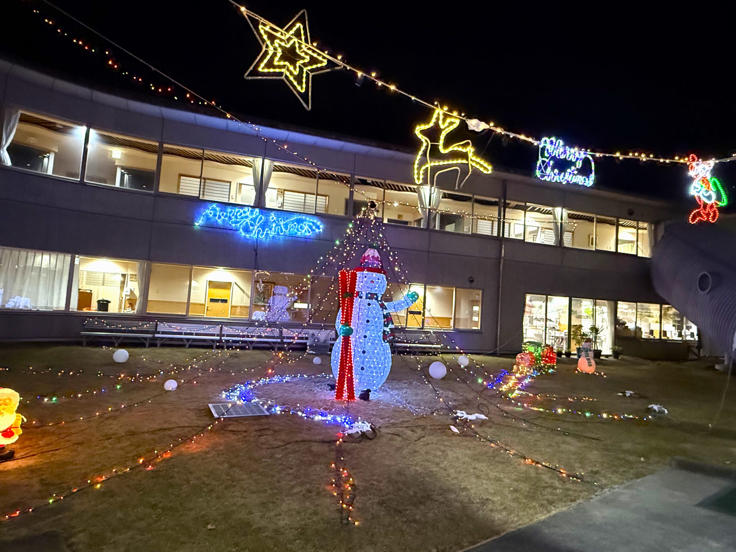 師走に入り、夕方暗くなる時間も早くなってきましたが、七里ガ浜ホームの中庭は今年もキラキラと光って、皆様に喜んでいただいています。