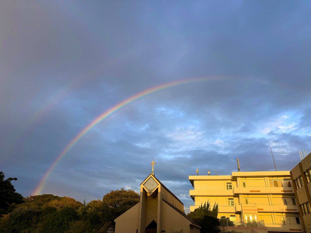 七里ガ浜ホームのある福祉の丘上空に、大きな虹が